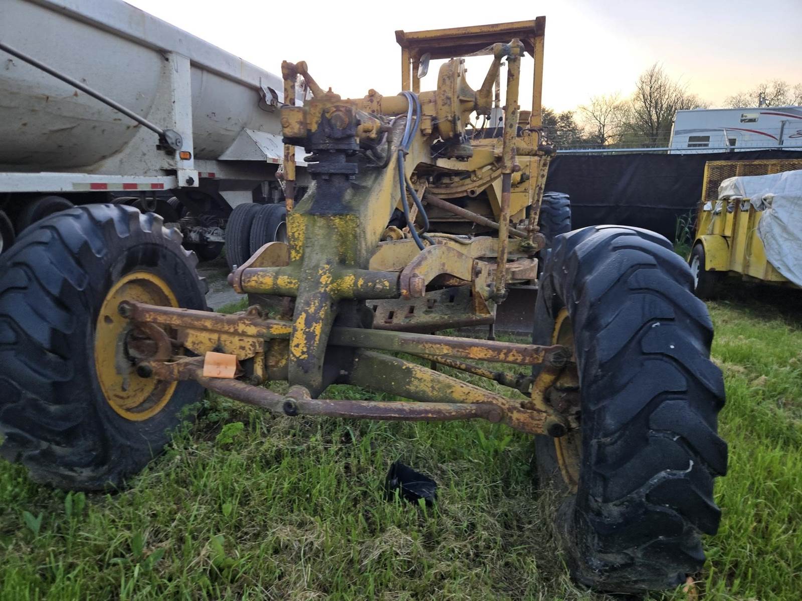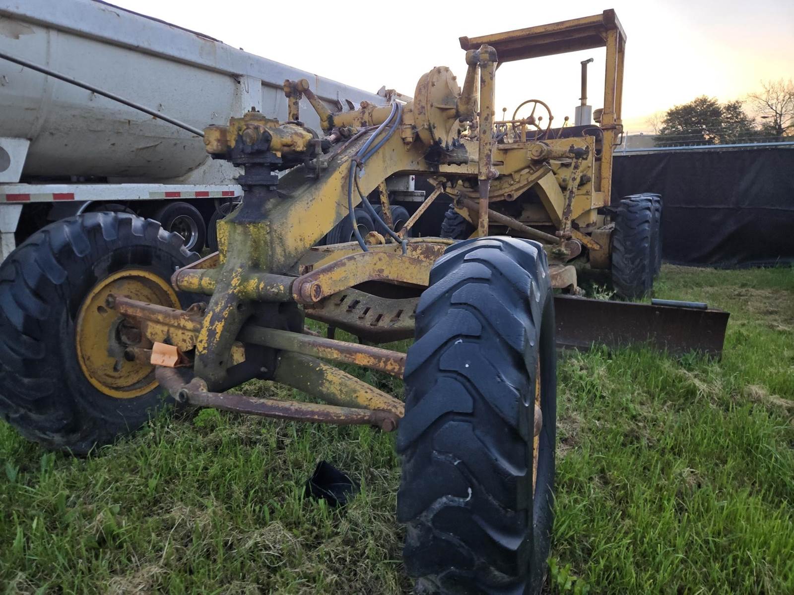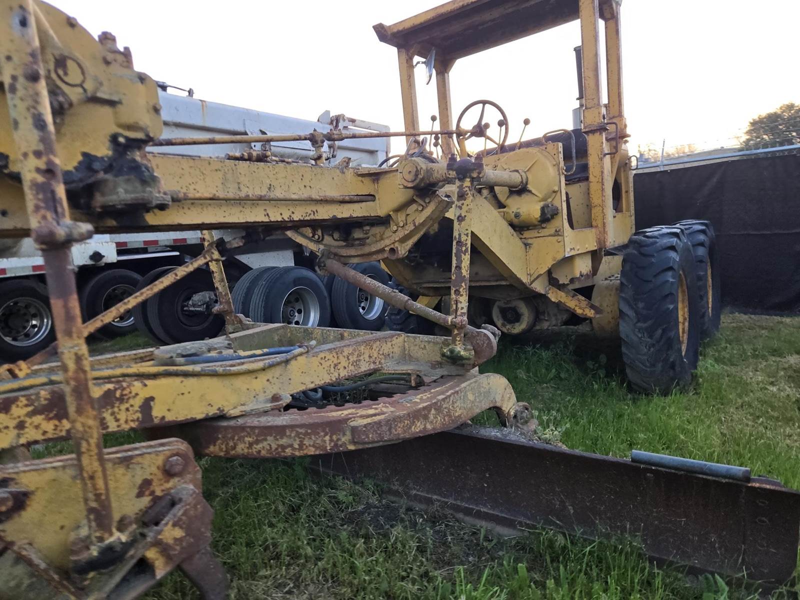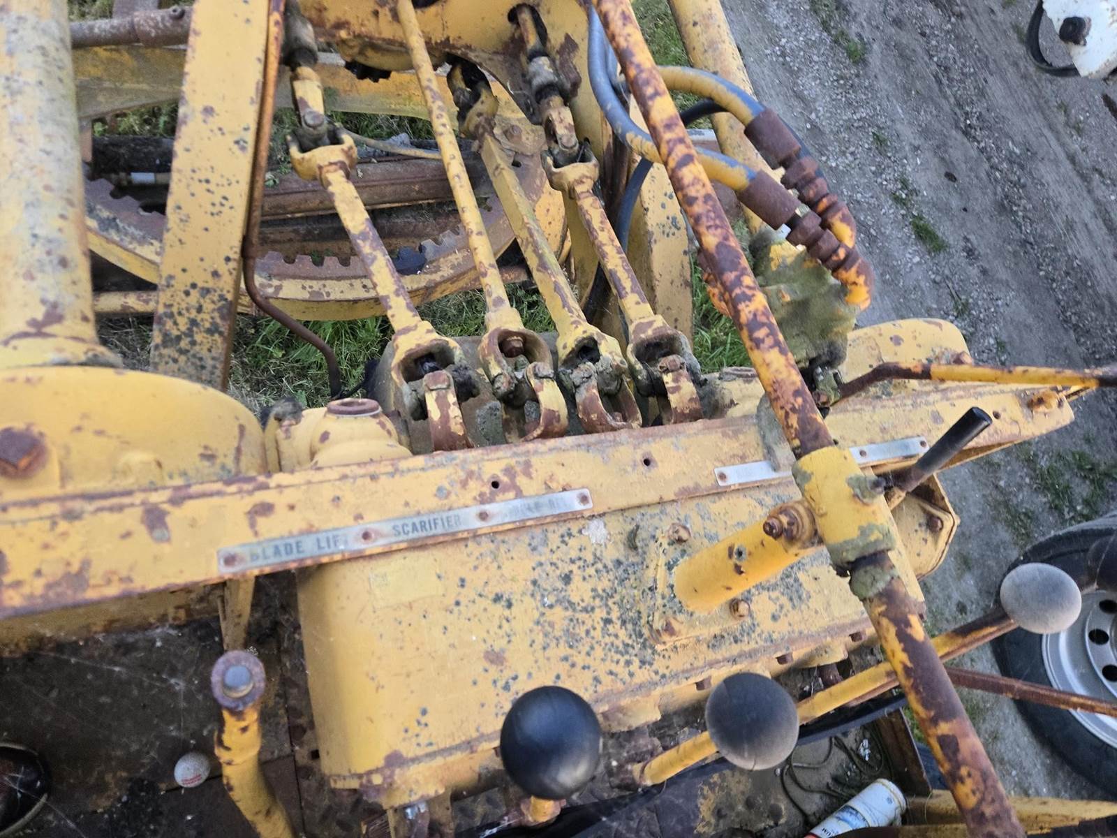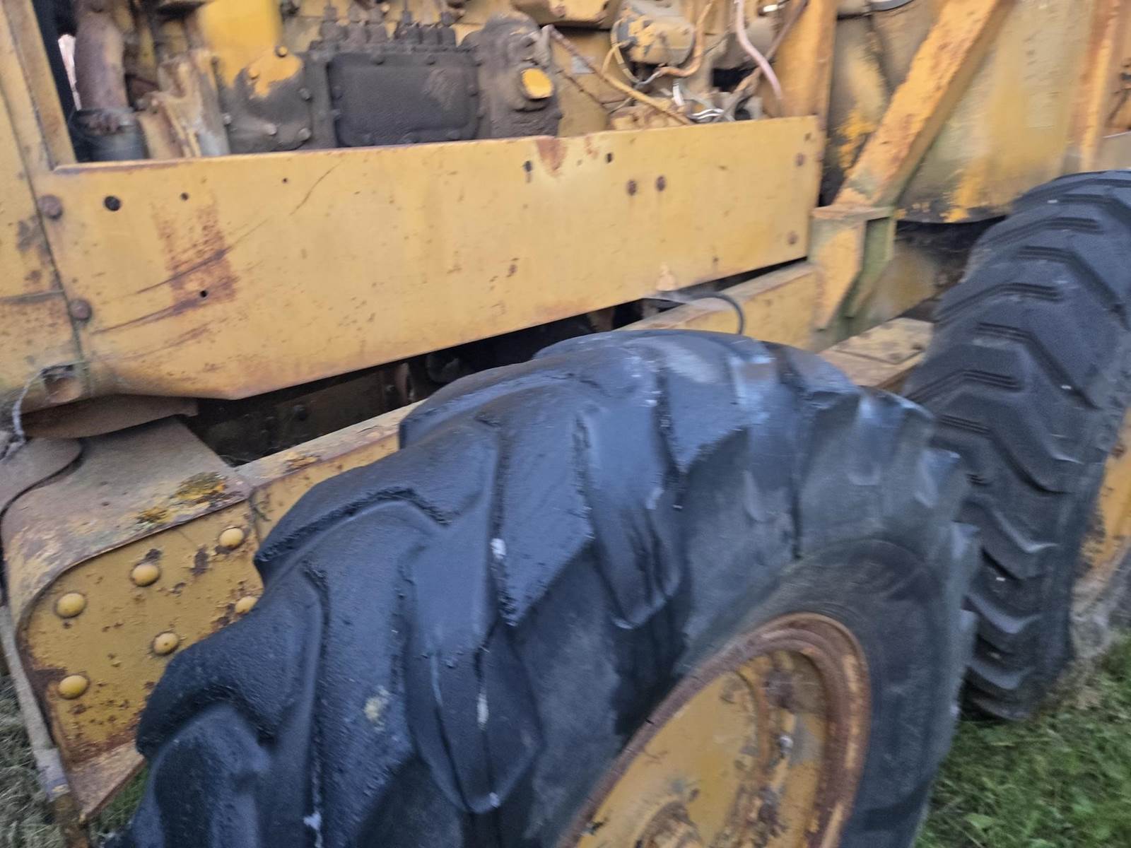 This grader appears to be a solid, complete machine with good tires and the original canopy. Starts, runs and drives. Blade and controls operate.