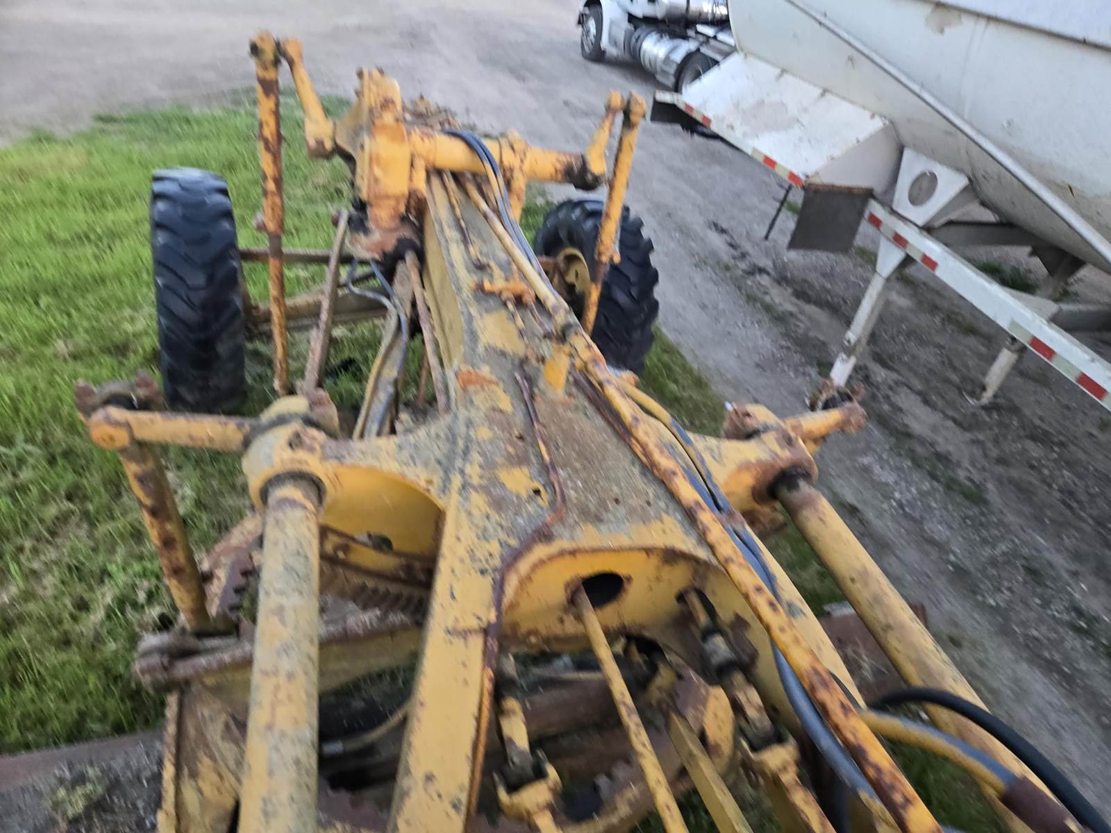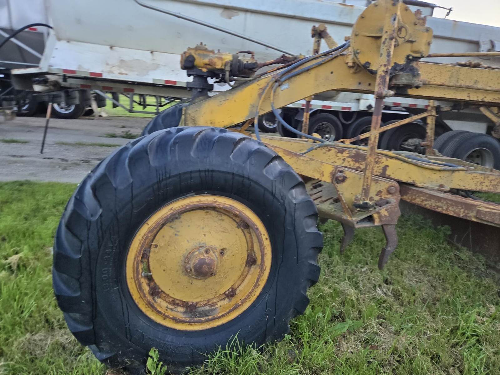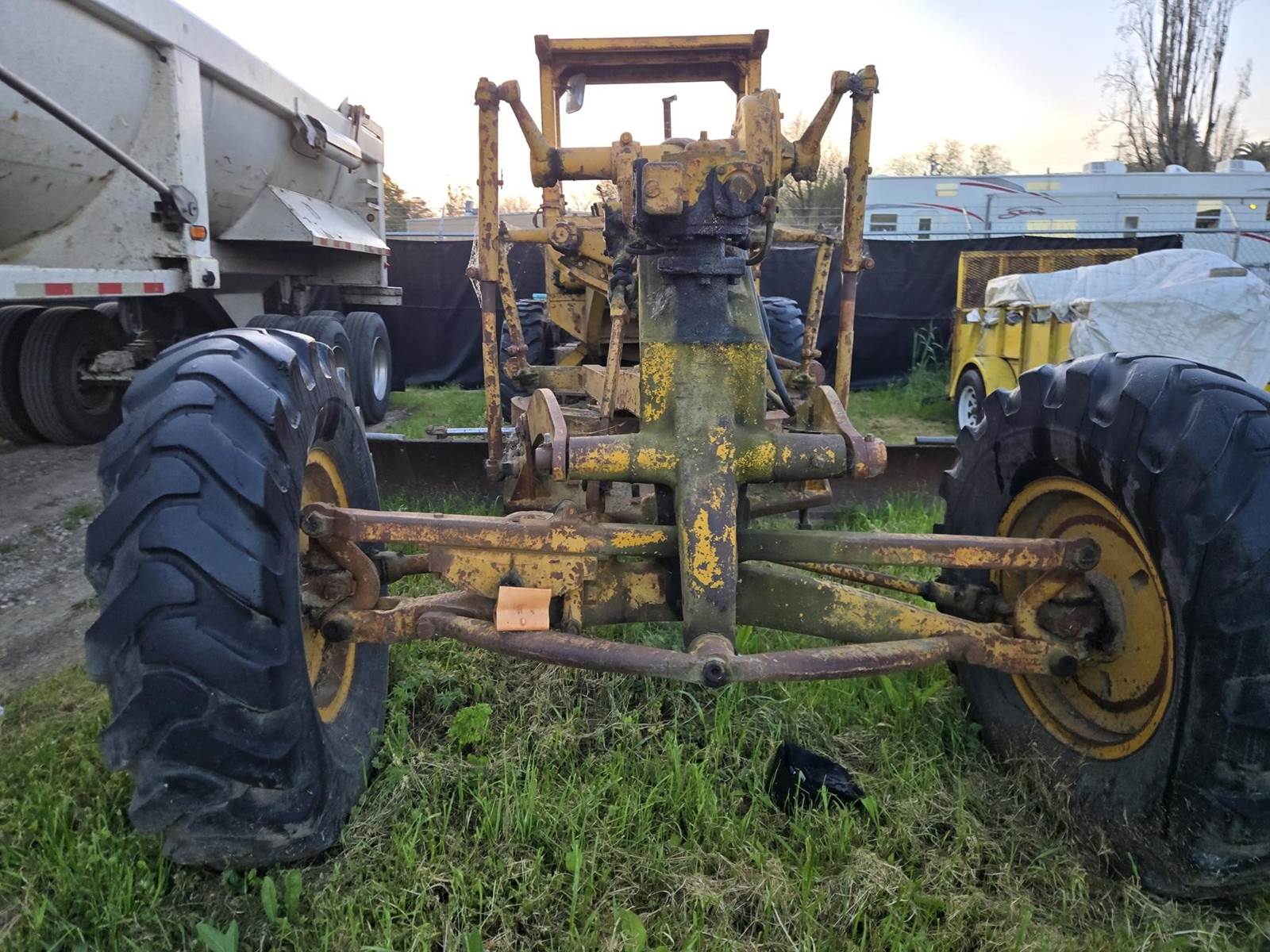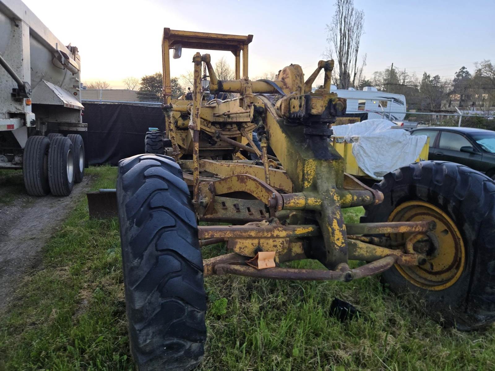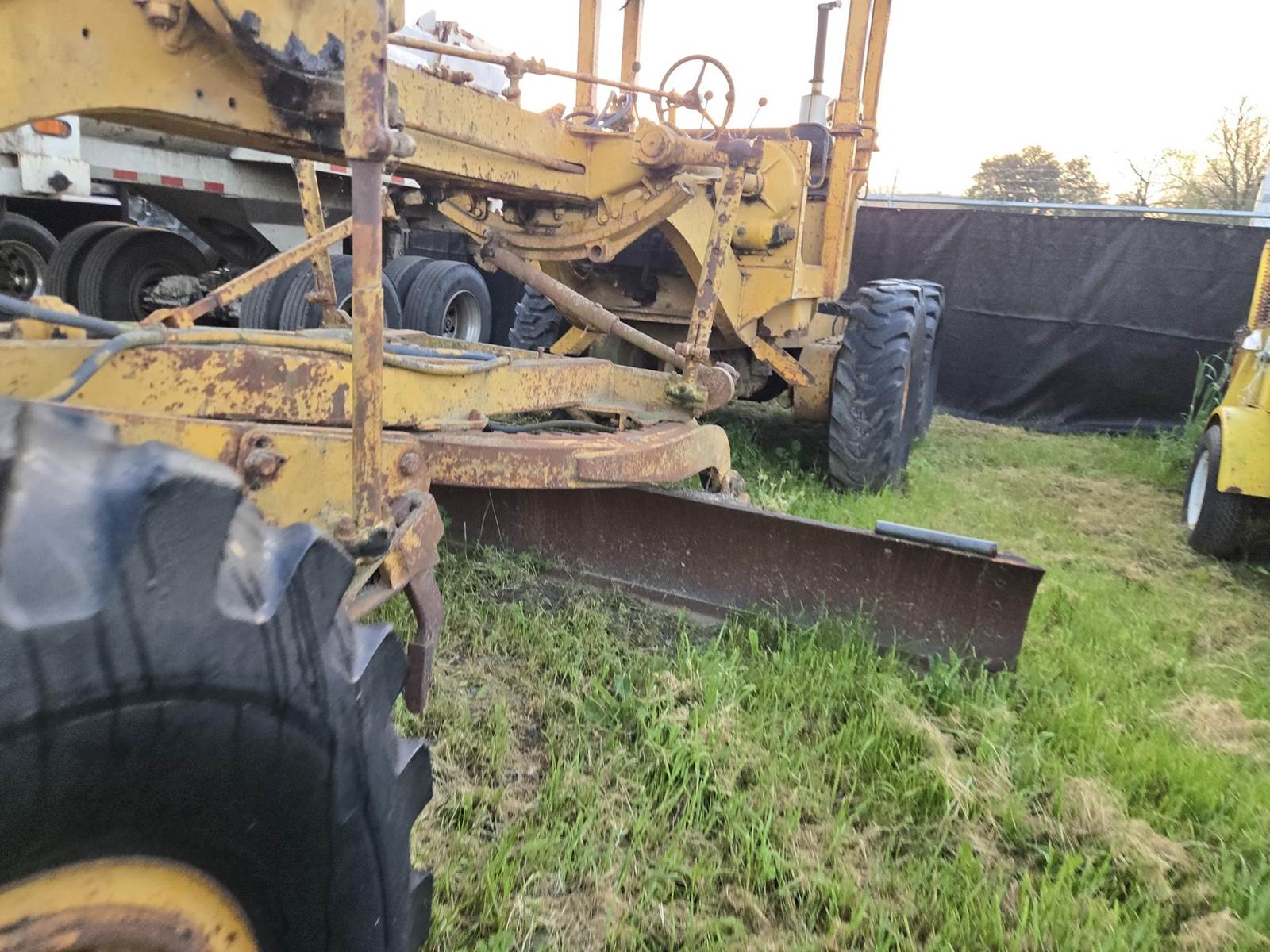 This grader appears to be a solid, complete machine with good tires and the original canopy. Starts, runs and drives. Blade and controls operate.