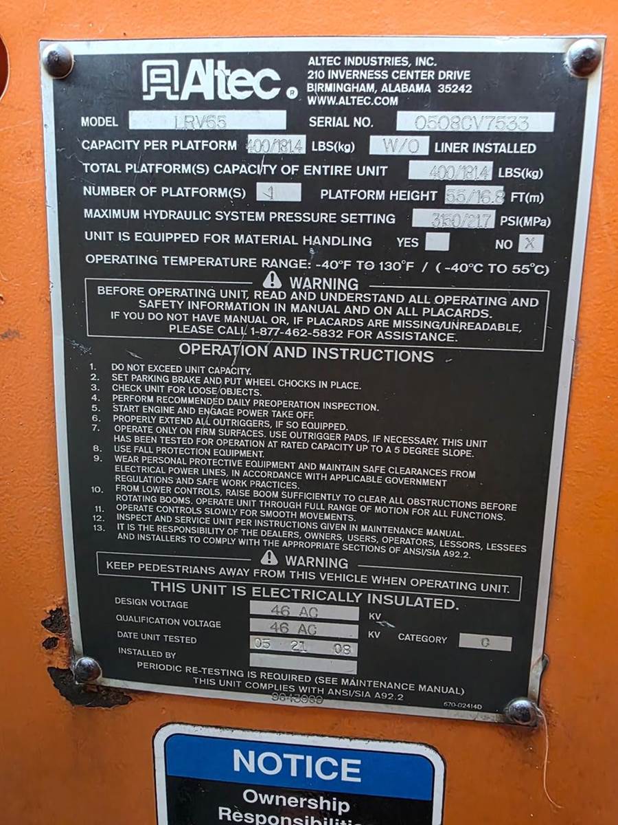 2008 GMC TopKick C7500 Single Axle Forestry Bucket Truck - 300HP, 6 Speed Manual