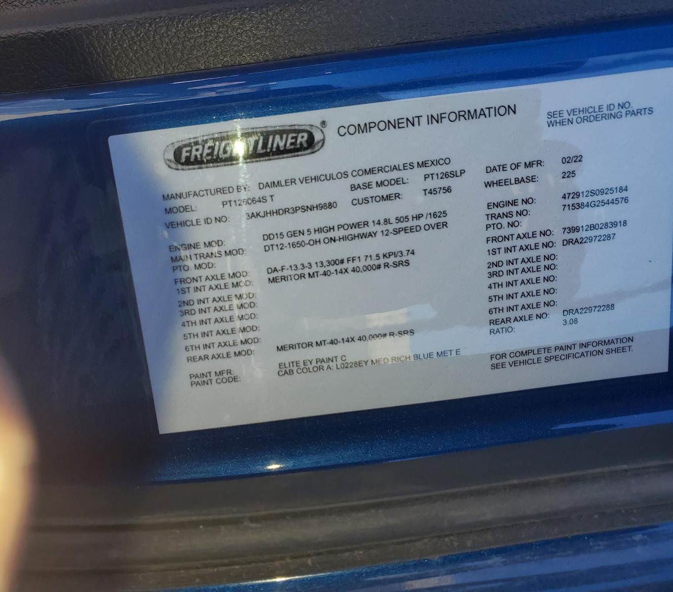 Engine: Detroit DD15 Gen 5 – 505 HP / 1,625 lb-ft torque